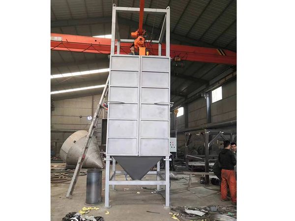 大袋拆包卸料機(jī)將噸袋包裝物料提升到進(jìn)料口,人工將包裝袋下料口拆開后,打開流量控制閥和附帶的振動下料裝置,促使包裝袋內(nèi)的粉粒狀物料通過自重落到下方料斗中,然后將干燥散料輸入正壓或負(fù)壓系統(tǒng),或直接輸入喂料機(jī)。