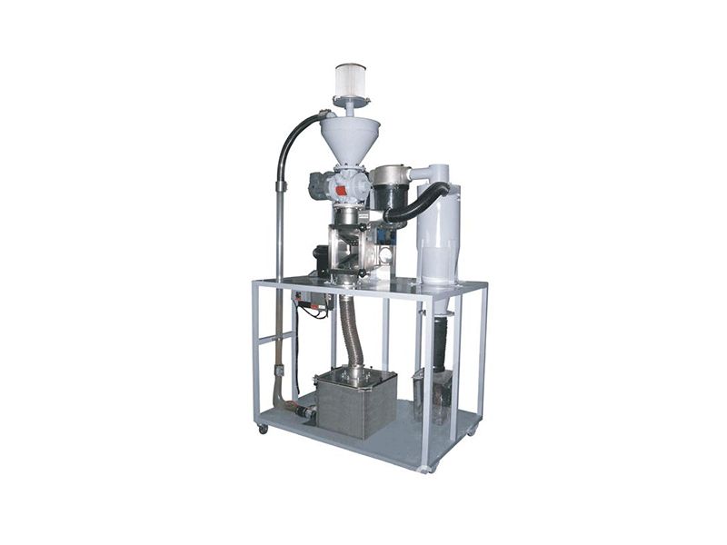物料和初級空氣從頂部向下進入靜態(tài)除粉機,氣流方向改變120°,并攜帶細顆粒經(jīng)由葉片排出除粉機,粗顆粒因自身重力而無法隨氣流轉向,則下落到靜態(tài)除粉機底部,經(jīng)過二次空氣流,從閥門排出。二次空氣從葉片下部給入,并穿過下落的顆粒料層,尺寸接近分離點的顆粒被二次氣流改變了方向,進入心形腔室內(nèi)的渦流中。進入靜態(tài)除粉機時被捕獲的細顆粒和從渦流中分離出的其他顆粒,均由氣流帶進收塵機進行收集。